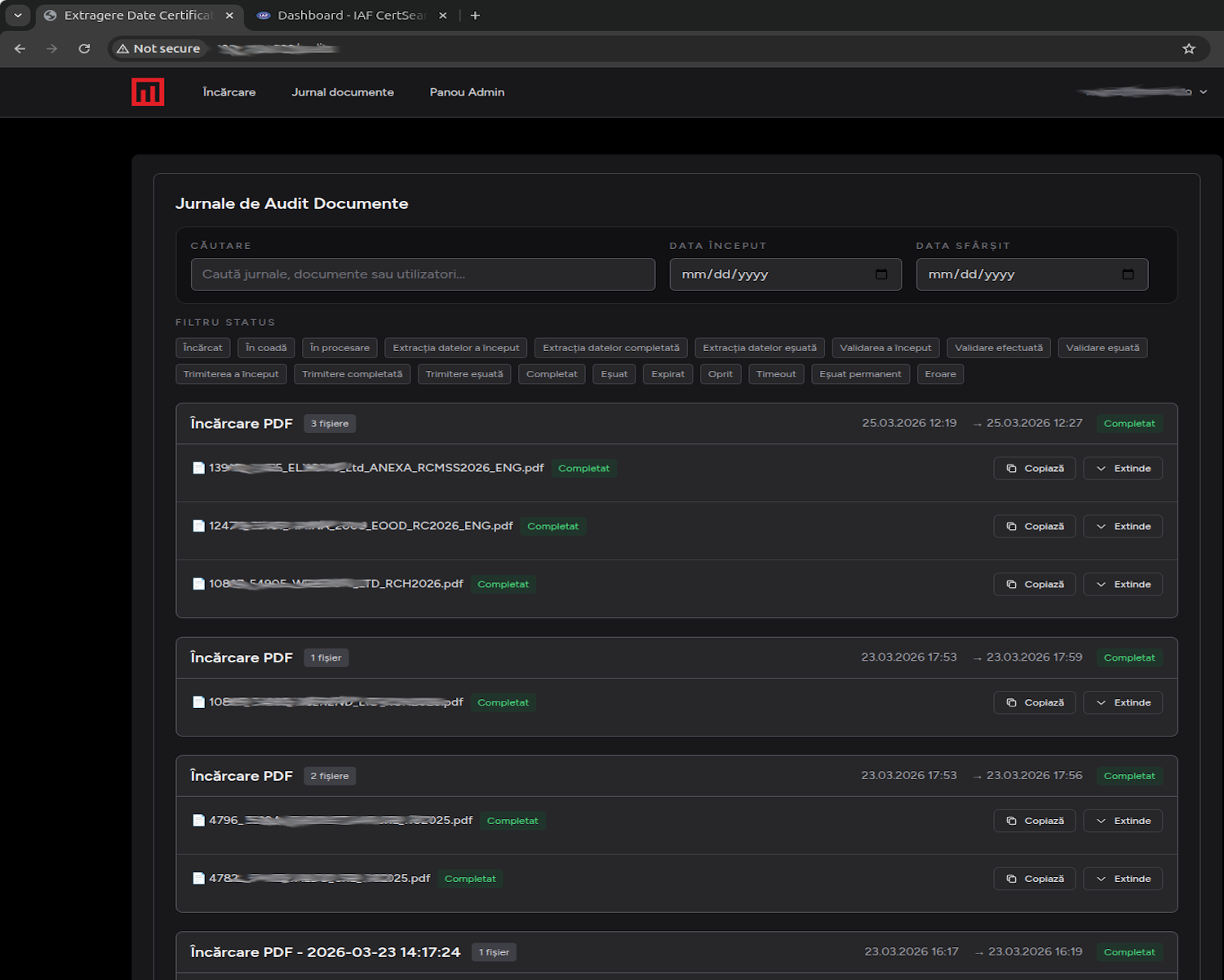 As Certind audits different companies and emits certificates, these acts must be registered in the international database to be recognized worldwide and applicable. Previously, Certind's reporting procedures involved human operators manually reviewing each certificate, extracting relevant information, and uploading it to the IAF (International Accreditation Forum) platform. This task demanded precision and hours of repetitive work done by human operators.